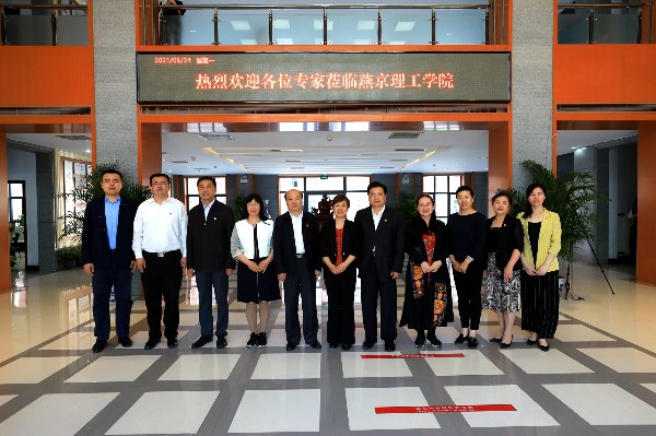专家组一行在听取学校工作汇报
