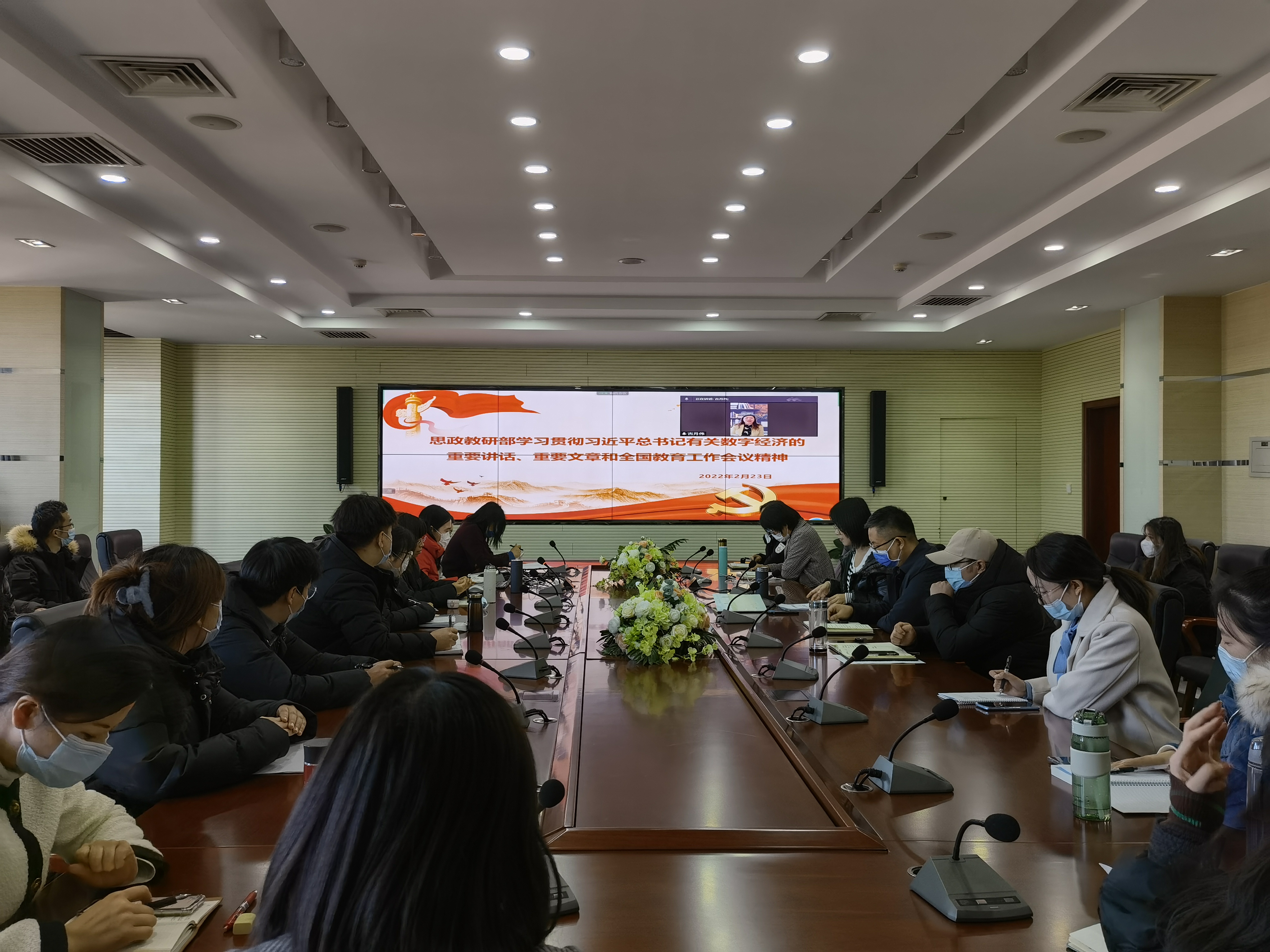2月23日,思政教研部在办公楼528会议室召开会议,认真学习贯彻习近平总书记有关数字经济的重要讲话、重要文章和全国教育工作会议精神。会议由思政教研部领导主持,教研部全体教师参会。