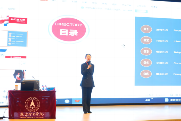 校长助理赵鹏在主持中说,作为高校教师,个人形象和行为举止要符合教育工作者的身份,希望参会教师能将所学礼仪知识转化为个人内涵素养,规范自我言行,树立良好形象,用自身的言传身教影响学生,为学校的教育教学工作锦上添花。