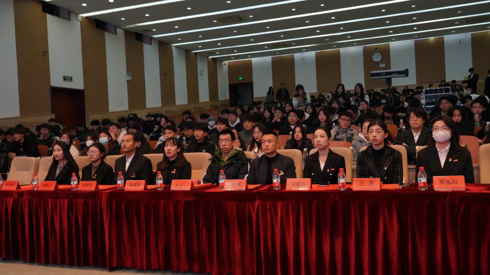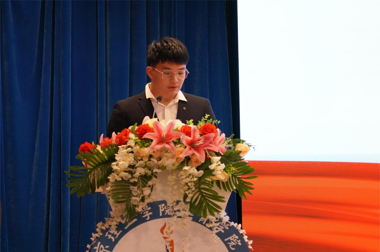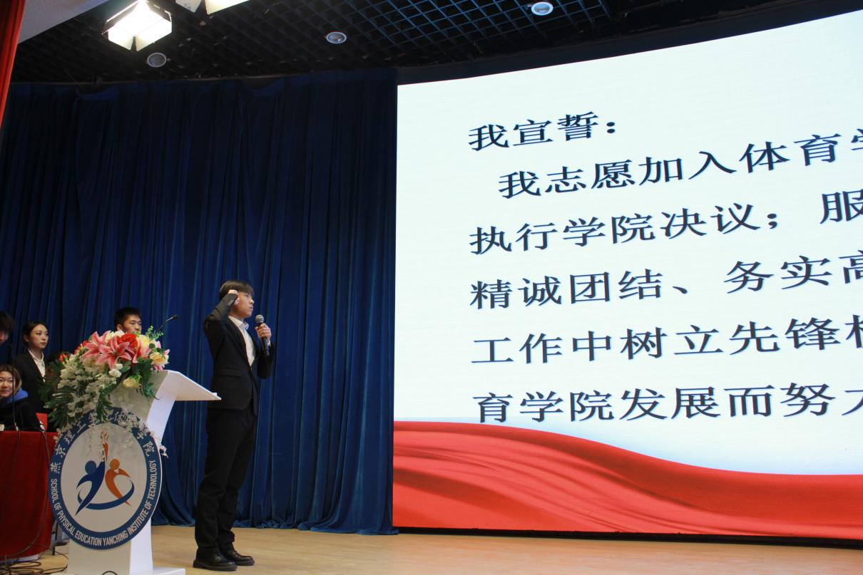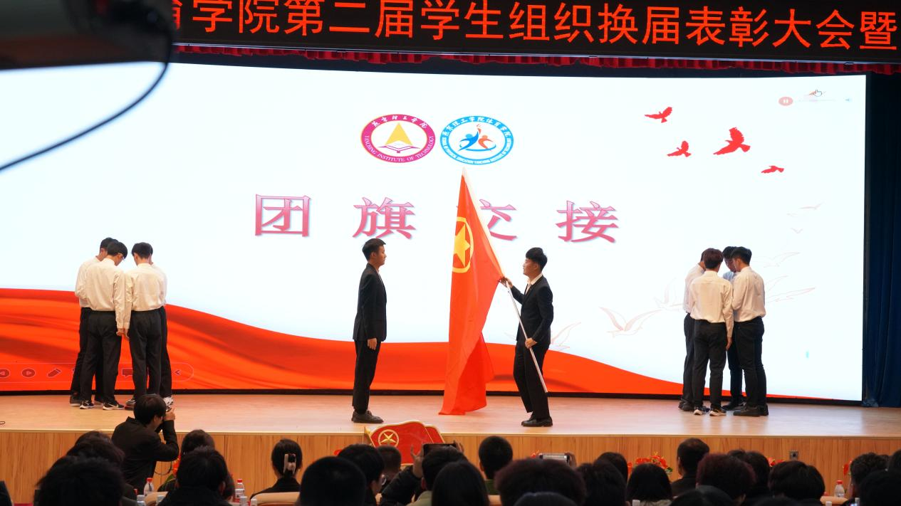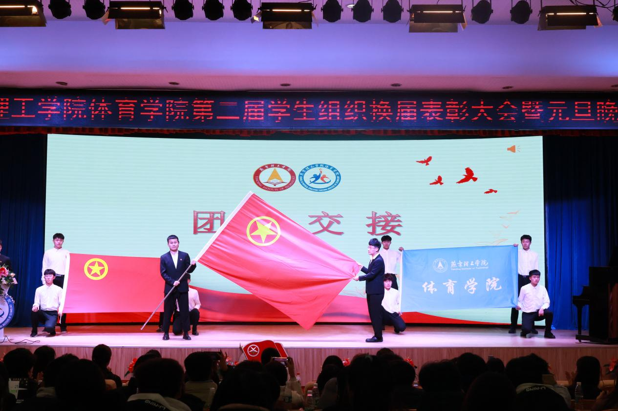 第二届、第三届学生组织代表交接团旗,体育学院学生代表韩洪润带领全体学生干部进行宣誓。中国共产主义青年团团旗是中国共产主义青年团的象征和标志,在团旗交接的刹那,学弟学妹们接过了任务,学长学姐们传承了信念与责任。