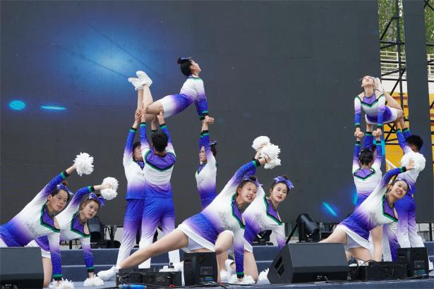 比赛现场,伴随着动感十足的音乐,参赛运动员身穿多彩的舞蹈服绚烂起舞,以矫健的舞姿焕发出青春光彩,用奔放的动作尽情展现风采,为现场观众带来了一场视觉盛宴。