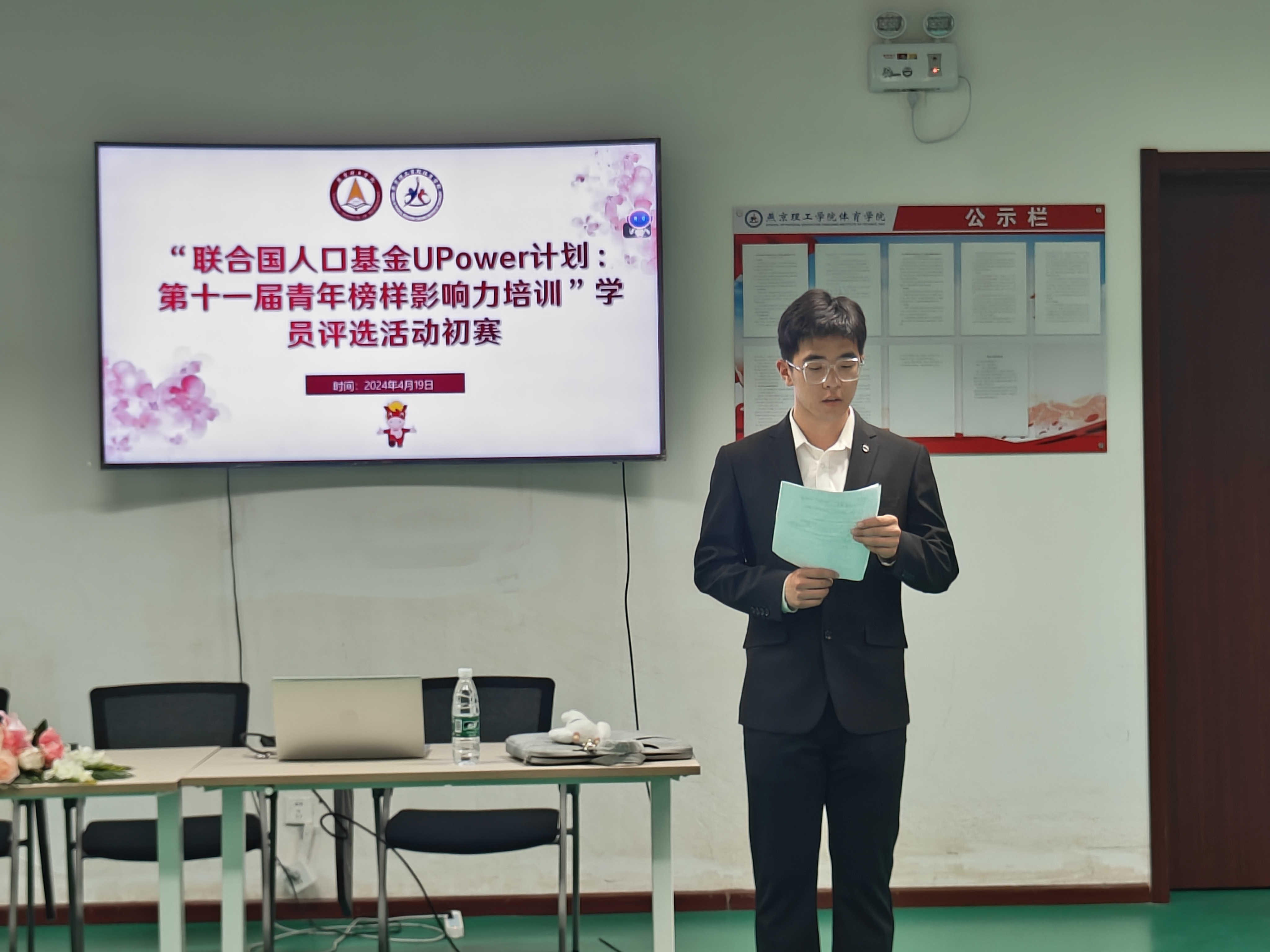 (体育学院新闻中心)为践行“高端化、全球化、个性化”的办学理念,培养具有国际视野,能够担当民族复兴重任的新时代青年,学校着力搭建青年精英相互沟通、交流、融合、共享的国际化平台,引导青年了解和推动人类共同问题的解决,不断开发和实现青年人的潜力,增强青年人的社会参与度和国际责任意识,提升青年人的全球胜任力。体育学院于2024年4月26日在体育馆202开展“联合国人口基金UPower计划:第十一届青年榜样影响力培训”学员评选活动初赛。党总支书记李斌及辅导员老师担任本次比赛的评委。