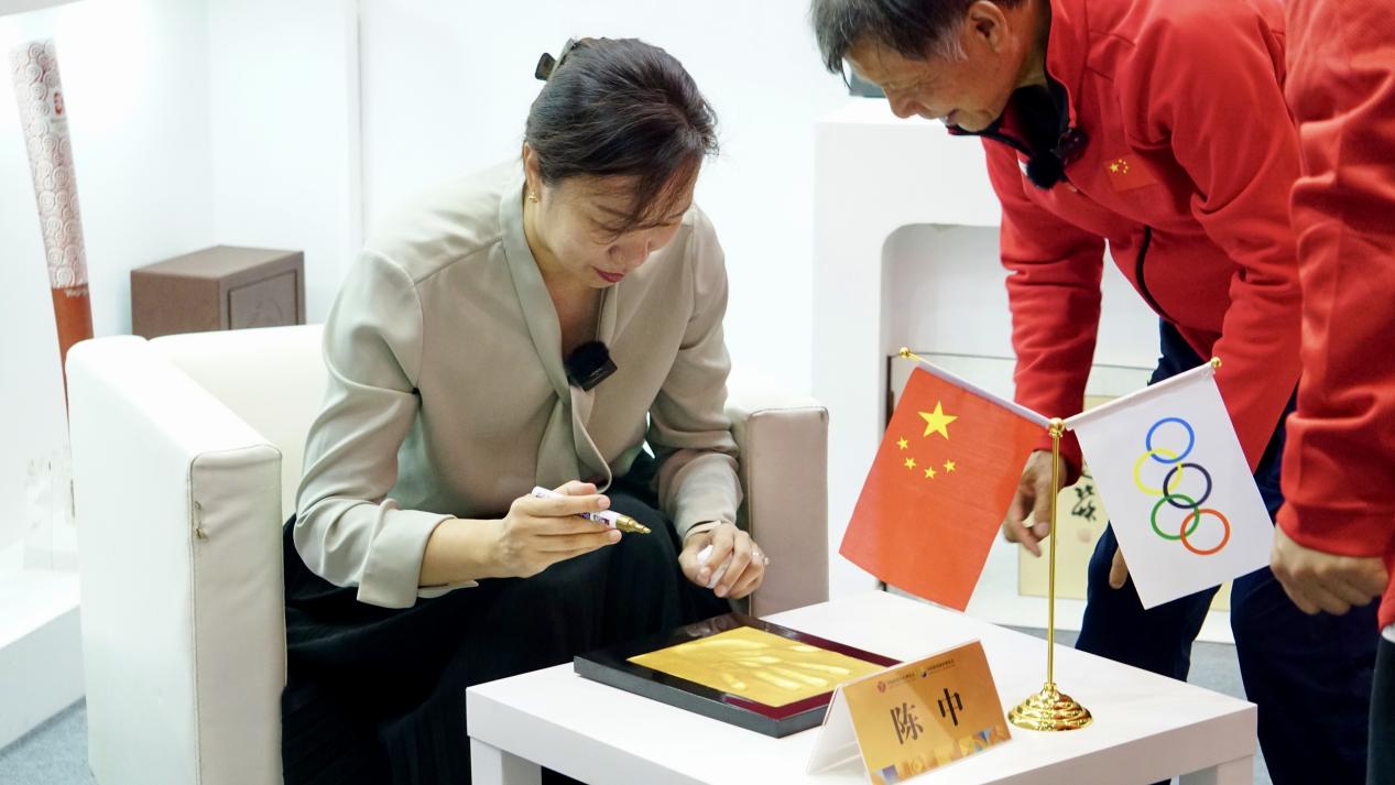 在随后的专访中,陈中女士和陈艳青女士分别回顾了自身的运动生涯和人生经历,她们不仅讲述了在追求奥运金牌的道路上所经历的挑战与胜利的喜悦,还以自己的亲身经历深刻阐释了体育精神的内涵。两位冠军的故事不仅展现了他们对体育的热爱和执着,也体现了他们面对伤病、面对挑战不屈不挠的意志和勇气,她们的分享不仅为在场的每一位观众带来了心灵的震撼,更让大家深刻体会到体育精神所蕴含的强大动力和独特魅力。在体育名人坊的纪念活动中,两位奥运冠军留下了珍贵的合影,并在展馆的荣誉墙上留下了他们的冠军手印。