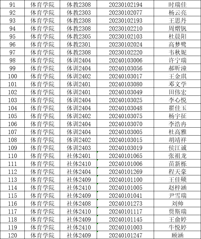 燕京理工学院体育学院 2024-2025学年第一学期优秀学生奖学金初评结果公示
