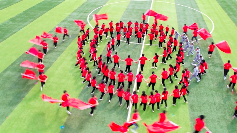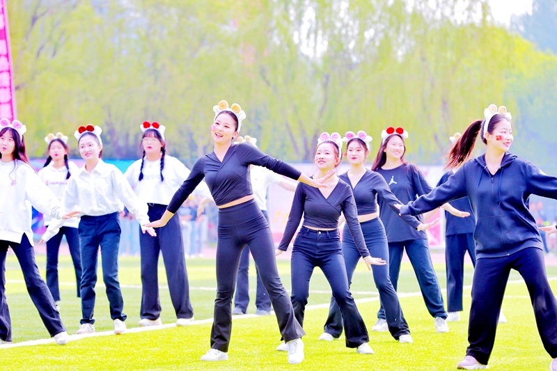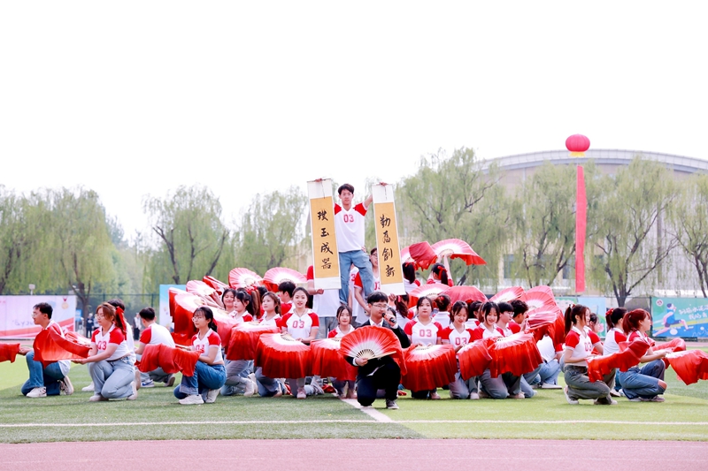 在盛大、精彩的龙狮表演中,各学院精彩纷呈的文体表演依次展示。体育学院学子身着奥运五环颜色的衣服,团结一致围成五环形状。国商学子身着白蓝服饰,带来了元气满满的啦啦操表演,以最活力的状态舞动于操场中心,伴随着欢快的音乐,闪耀的花球亮出绚丽的光彩。建筑学院方阵团身着安全头盔与绿色背心,迈着矫健的步伐,高喊加油口号,精神饱满,英姿飒爽。智能工程学院在机器人玩偶的带领下,挥舞大旗,形成旗阵。击鼓舞扇,古装扮相,文法学院带来丰富多彩的开场表演。彩旗飘飘,扇舞翩翩,艺术学院组成五环及党旗等图案,展现着开拓创新、锐意进取的精神风貌。整齐划一,脚步铿锵,传媒学子载歌载舞。信息学子高举京京以心起誓,在蓝天下放飞寄满希望的气球。会计学子高扬院旗、手持花伞、步履整齐,以自信的笑容彰显青年风采。环境与健康学院手捧向日葵,带来活力四射的健康操表演。