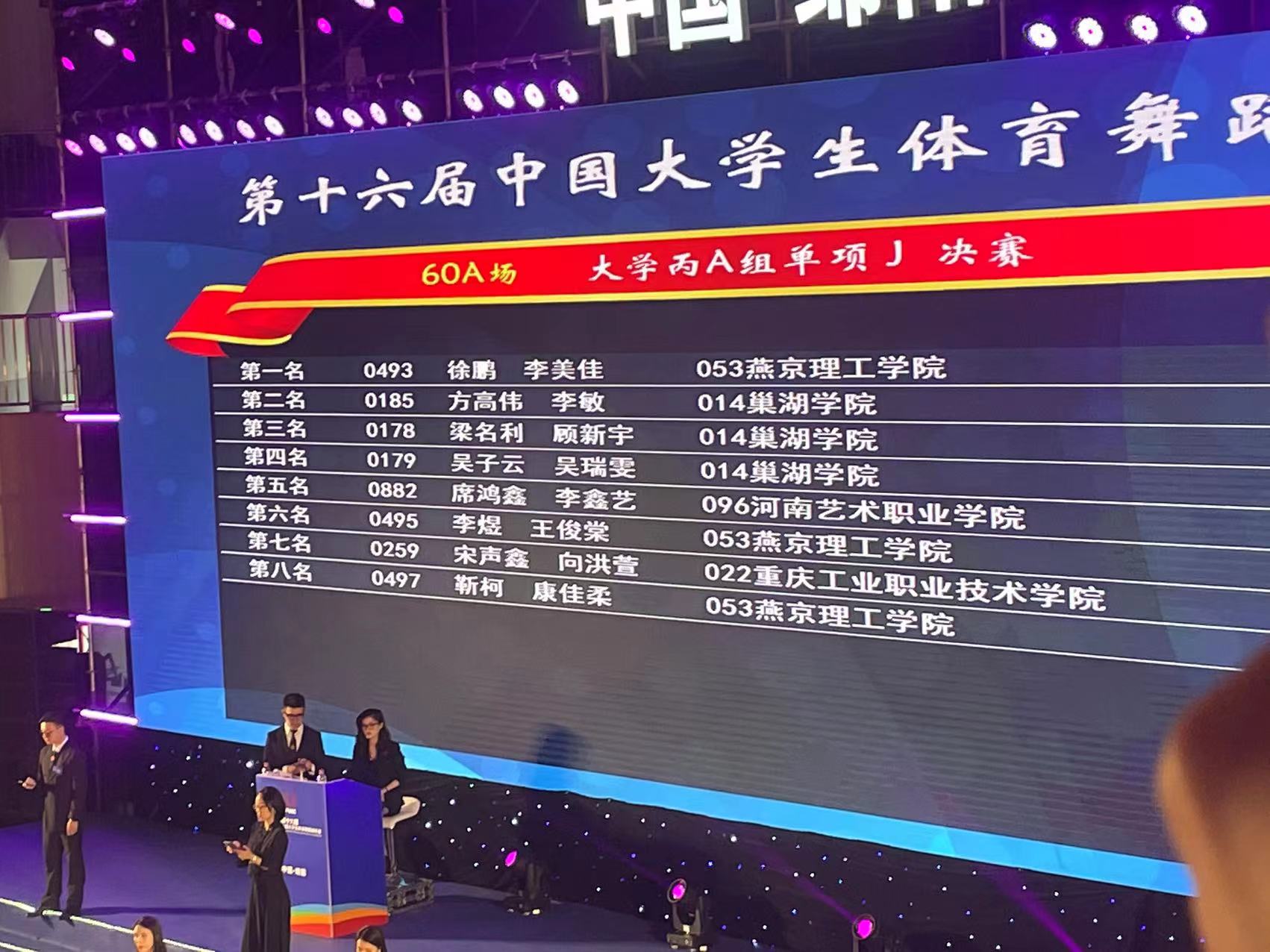 此次比赛由体育学院教师蒋帅、宋雨竹带队参赛,经过两个月的积极备战,做足了赛前准备,此次比赛人数和规模创历届规模之最,我校12名学生顶住压力在赛场顽强拼搏,充分展示燕理学子的风采与身姿,为我校体育竞赛成绩增光添彩。