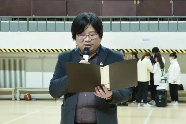 党总支书记陈航在致辞中提到,本次“文法杯”篮球赛极大丰富了同学们的课余生活,是深入推进体育教育的重大举措,在增强学生凝聚力,培养学生良好运动习惯等方面起到了积极意义。同时,也为文法学子提供了展示自我运动风采的舞台,希望大家在赛场中奋力拼搏,赛出风格,赛出水平!