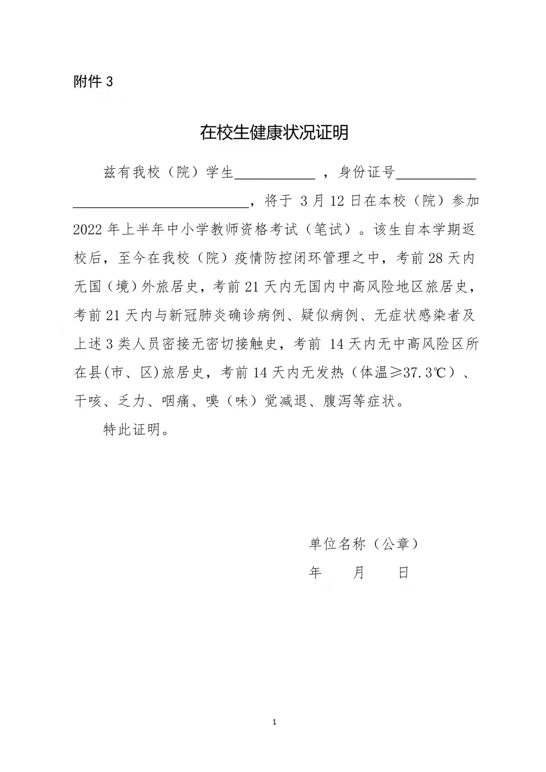 7.考生提供的《考生健康情况自我承诺书》《在校生健康状况证明》《核酸检测阴性证明》均为每科目入场时提交一份,原件或复印件皆可,请提前准备充足。