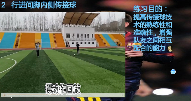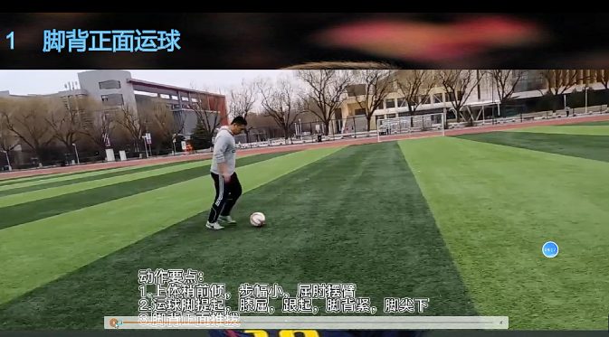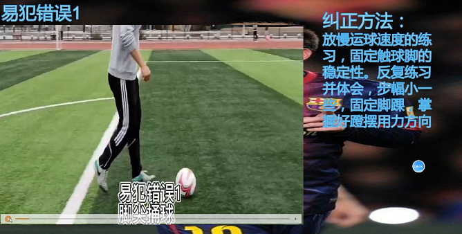 2.在教授新的技术动作时,通常也是以视频的方式,首先是正常速度播放完整的示范动作,然后是慢动作回放的形式让学生以更加清晰的角度观看该动作,并在视频中用文字,简要地描述动作要领,同时指出容易犯的错误,如何去纠正错误动作。