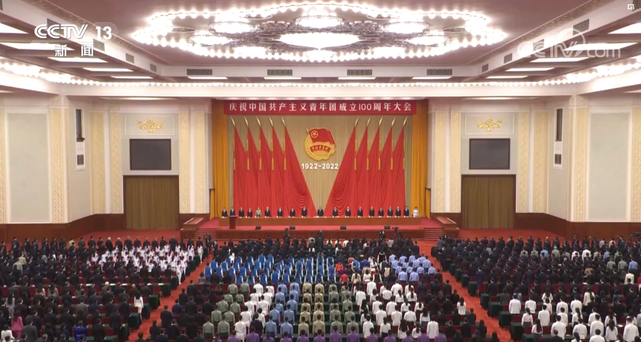 2022年5月10日上午,在北京人民大会堂隆重举行庆祝中国共产主义青年团成立100周年大会。中共中央总书记、国家主席、中央军委主席习近平出席大会并发表重要讲话。