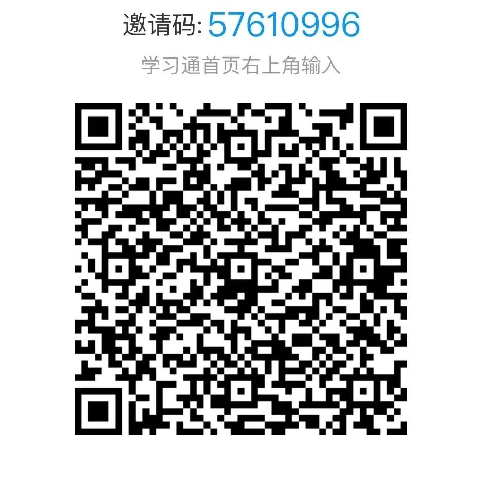 通过学习通APP,扫码或输入邀请码(邀请码为:57610996)加入体育知识竞赛班级群组。报名截至时间为2022年12月2日22时,加入群组后在班级空间内回复本人学院+专业班级+姓名+手机号,未回复视为未报名成功,不可参加考试。