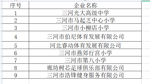 完成实习基地签约的九家企事业单位分别是三河光大高级中学、三河市马起乏中心小学、三河市小柳店小学、三河市伯尼体育发展有限公司、河北睿动体育发展有限公司、三河市燕郊行宫小学、三河市第八小学、廊坊树芯足球俱乐部有限公司、三河市浩锋健身服务有限公司。