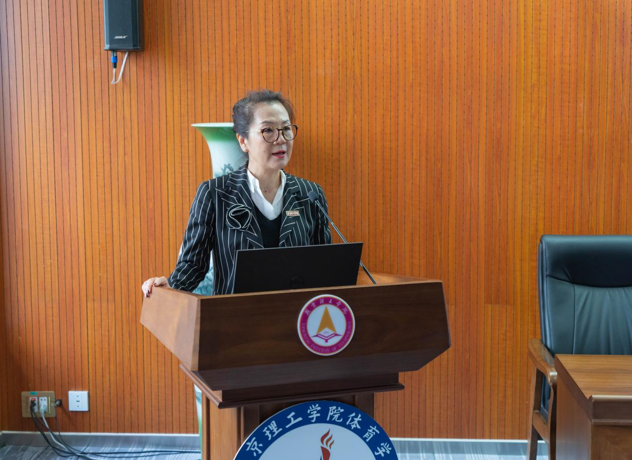 国家体育总局社会体育指导员协会副主席、体育行业职业教育教学指导委员会委员、首都体育学院客座教授王军以《从博物馆发展探讨燕理体育博物馆的功能》为题,从博物馆概述、世界体育博物馆概述、燕理博物馆的特色和功能三个方面展开讲解。王军教授从燕京理工学院体育博物馆的特色与功能着手,提出学校应该要推进体育文化及体育博物馆的研究与发展,以博物馆开馆为契机,弘扬奥运精神,讲好燕理故事,提升燕理体育文化内涵。她表示,燕京理工学院是国内第一家拥有体育博物馆的综合类高校,希望燕京理工学院把体育博物馆建设好、利用好,使之成为讲好体育历史、传承体育文化、弘扬体育精神的重要窗口。