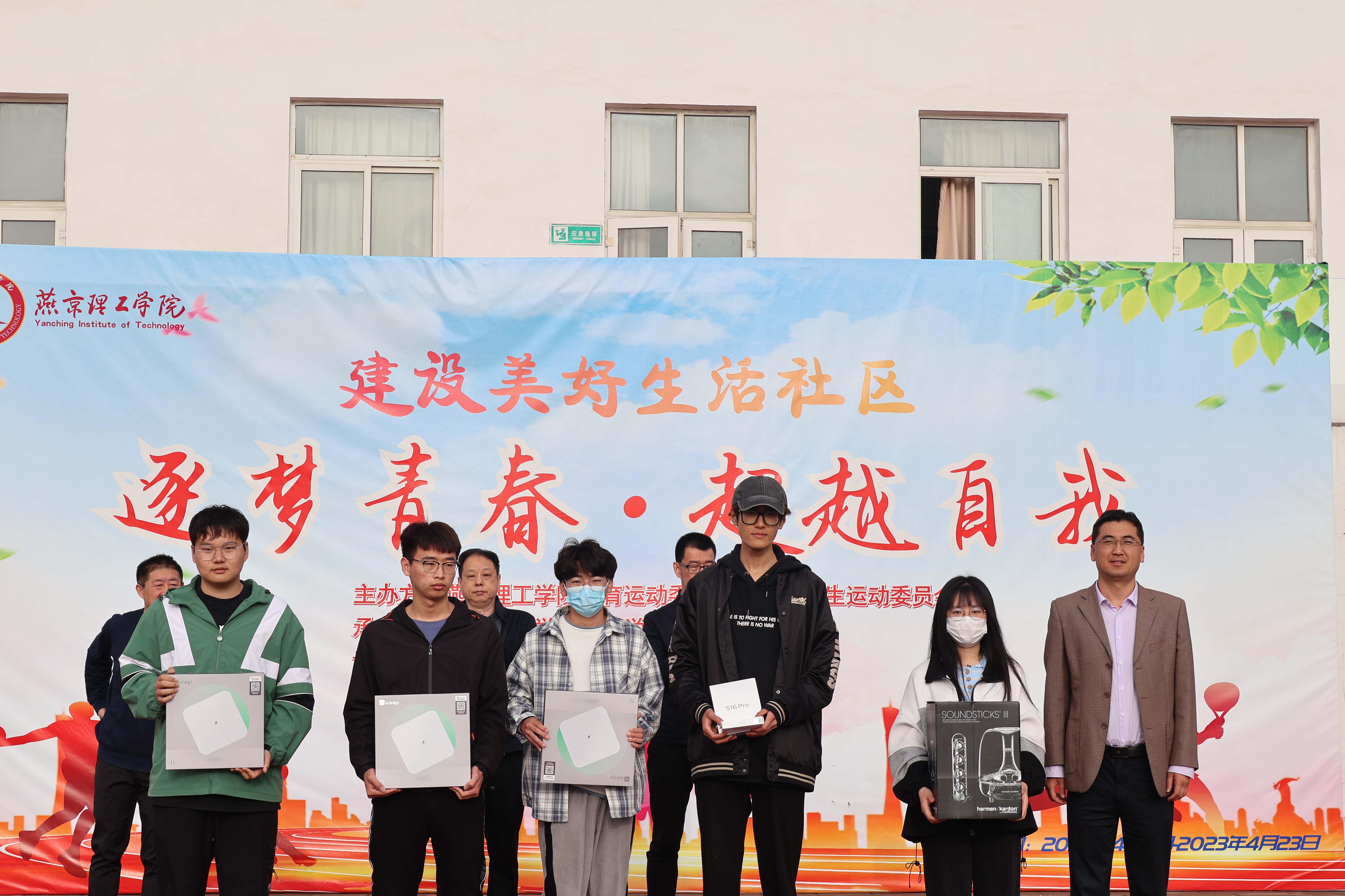 为丰富校园生活,提高学生身体素质,宣扬当代大学生积极运动的良好风貌。表达共享美好校园生活的积极意义,倡导“在燕理,体育无处不在”的运动理念。由燕京理工学院体育运动委员会主办,燕京理工学院体育学院、后勤资产处承办的“逐梦青春,超越自我”系列活动于田径场举行闭幕仪式。出席本次闭幕式的有学校副校长宋伟、后勤资产处处长赵生光、副处长薛京涛、体育学院院长肖子一。