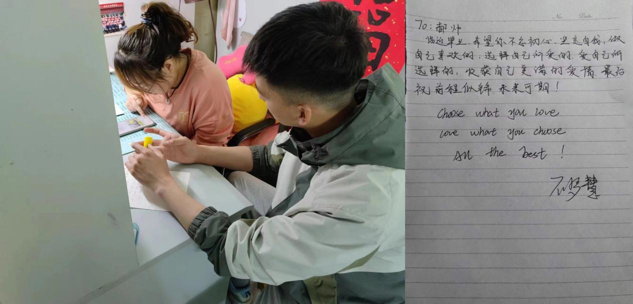 本次活动分为与昔日母校恩师的一次谈话、为高考前一天的自己写一封信、分享一个燕理故事和志愿小导师等形式展开。同学们带着满满的回忆来到中学母校,怀揣着恩师爱的寄语走出母校大门。一张张照片,一封封信件,记录了本次实践活动的温馨一瞬,以下是同学们参与本次活动的精彩摘录。