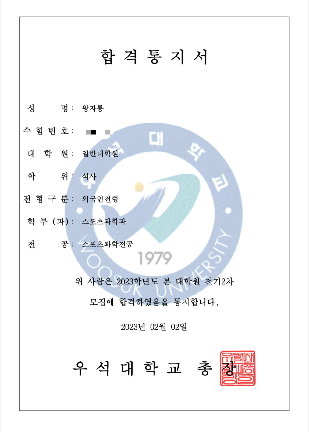 谈起为何选择报名本专硕直通项目,他表示,通过体育学院的老师了解到燕京理工学院为燕理学子提供了海外深造项目,并配有国内外优质教育资源、优秀师资、全程导师陪伴、个性化培养方案等专业服务。经过仔细考量后,王子龙果断选择了报名。在申请学校时,因为他童年学习跆拳道的经历,使他对韩国有很深的向往。同时,通过向国际教育学院老师咨询,了解到又石大学的体育专业在韩国名列前茅,于是他开始制定计划,认真学习专业知识,努力提搞自己的GPA和韩语成绩,最终申请到了自己心仪的学校。