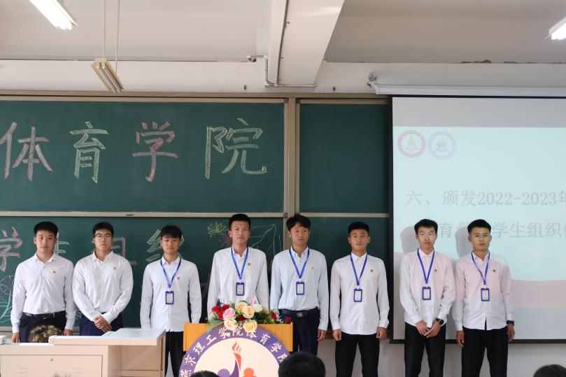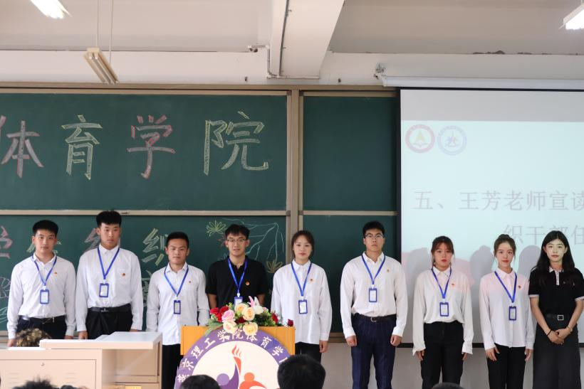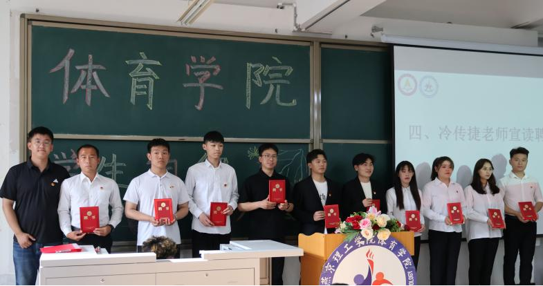 体育学院党总支组织委员、学生党支部书记冷传捷宣读聘书名单,并为学生干部颁发聘书