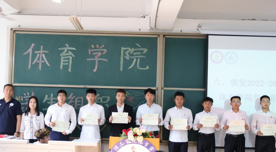 体育学院党总支组织委员、学生党支部书记冷传捷宣读聘书名单,并为学生干部颁发聘书。