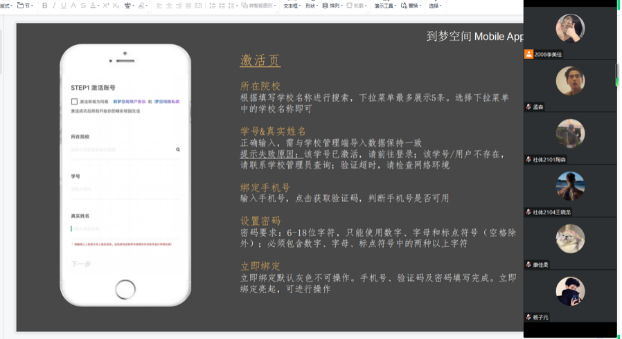 会议开始后,各组织负责人,认真学习“到梦空间”系统和手机app使用,并且在会议结束后在各班不断推进。以便我学院在后续活动中顺利开展。
