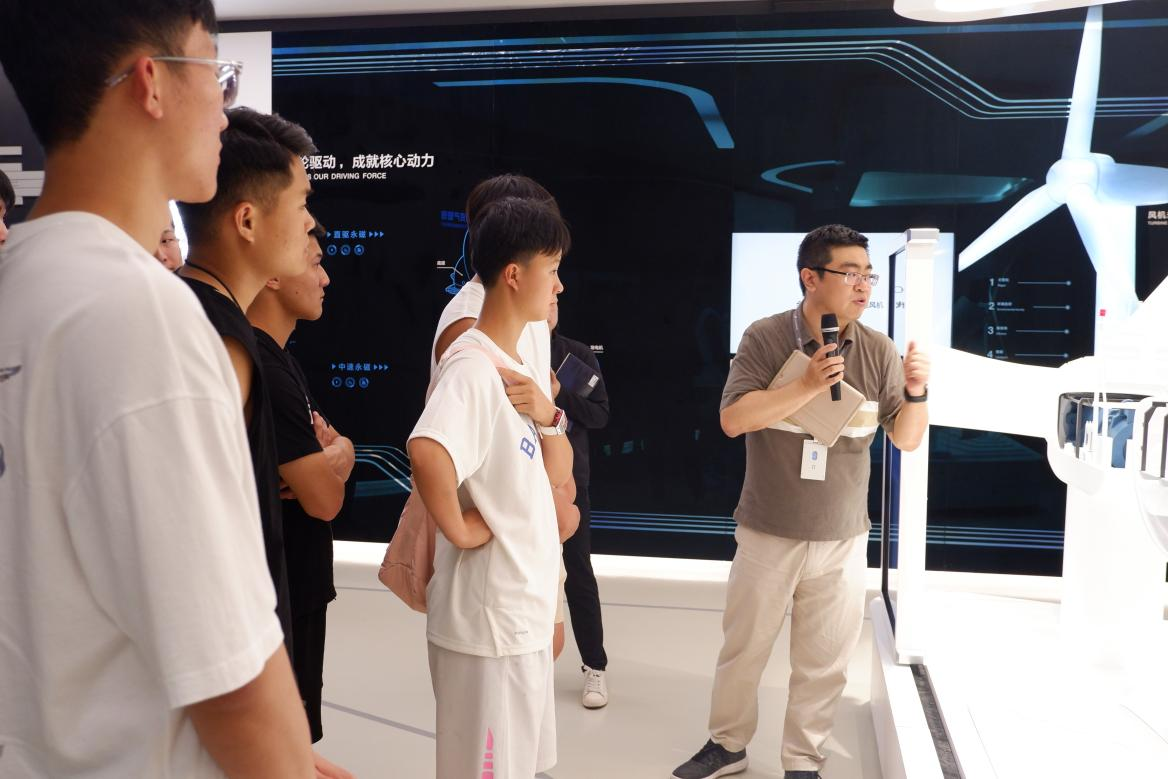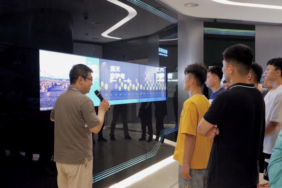 校企双方领导发表讲话后,分两组由接待人员带领进入产业园进行观摩。参观了金风科技展示中心、体育场馆、电控厂及智能温室大棚。