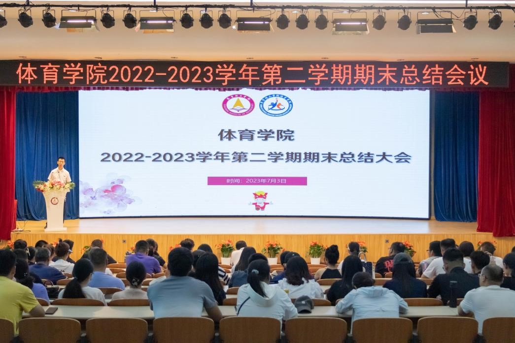 (体育学院新闻中心)为总结回顾本学期体育学院各项工作完成情况,安排部署下一学期工作目标,7月3日,体育学院于报告厅召开2022-2023学年第二学期期末总结会议。体育学院院长肖子一、副院长许光云、各教研室主任、课程群负责人、全体教师、辅导员以及行政人员参加会议。