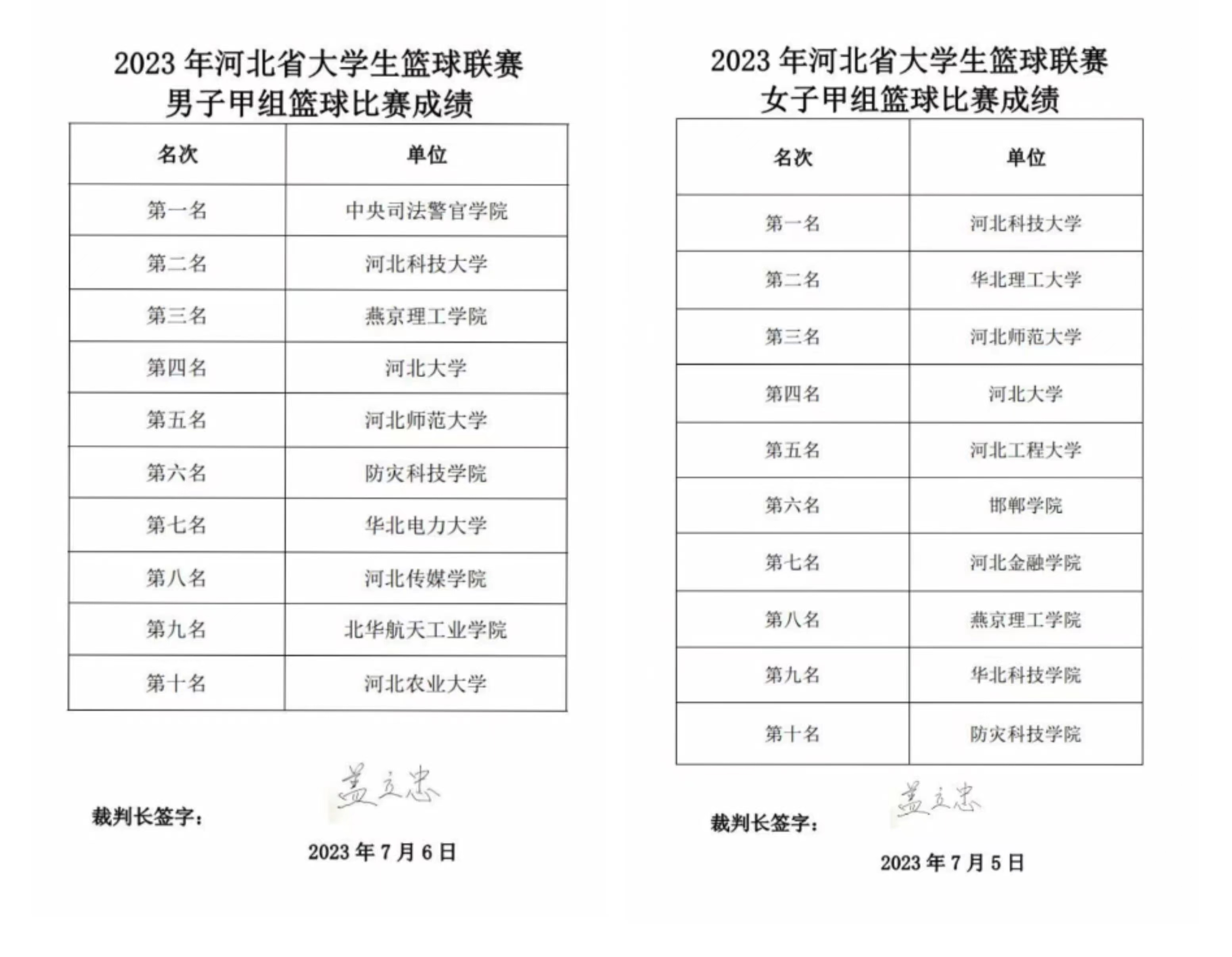 (体育学院新闻中心)6月30日,由河北省教育厅主办,河北省大学体育协会协办,河北师范大学承办的2023年河北省大学生篮球联赛于石家庄成功举办。本次比赛分为本科院校组和高职高专组两个组别,本科院校组来自省内28所院校,46支参赛队伍,运动员542人,领队45人,教练员66人,共计653人参加比赛。