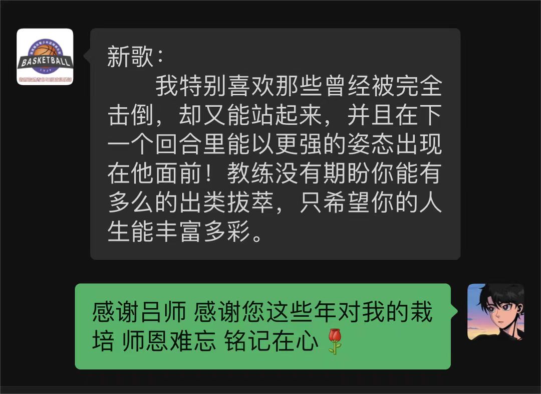 我特别喜欢那些曾经被完全击倒,却又能站起来,并且在下一个回合里能以更强的姿态出现在他面前!教练没有期盼你能有多么的出类拔萃,只希望你的人生能丰富多彩!