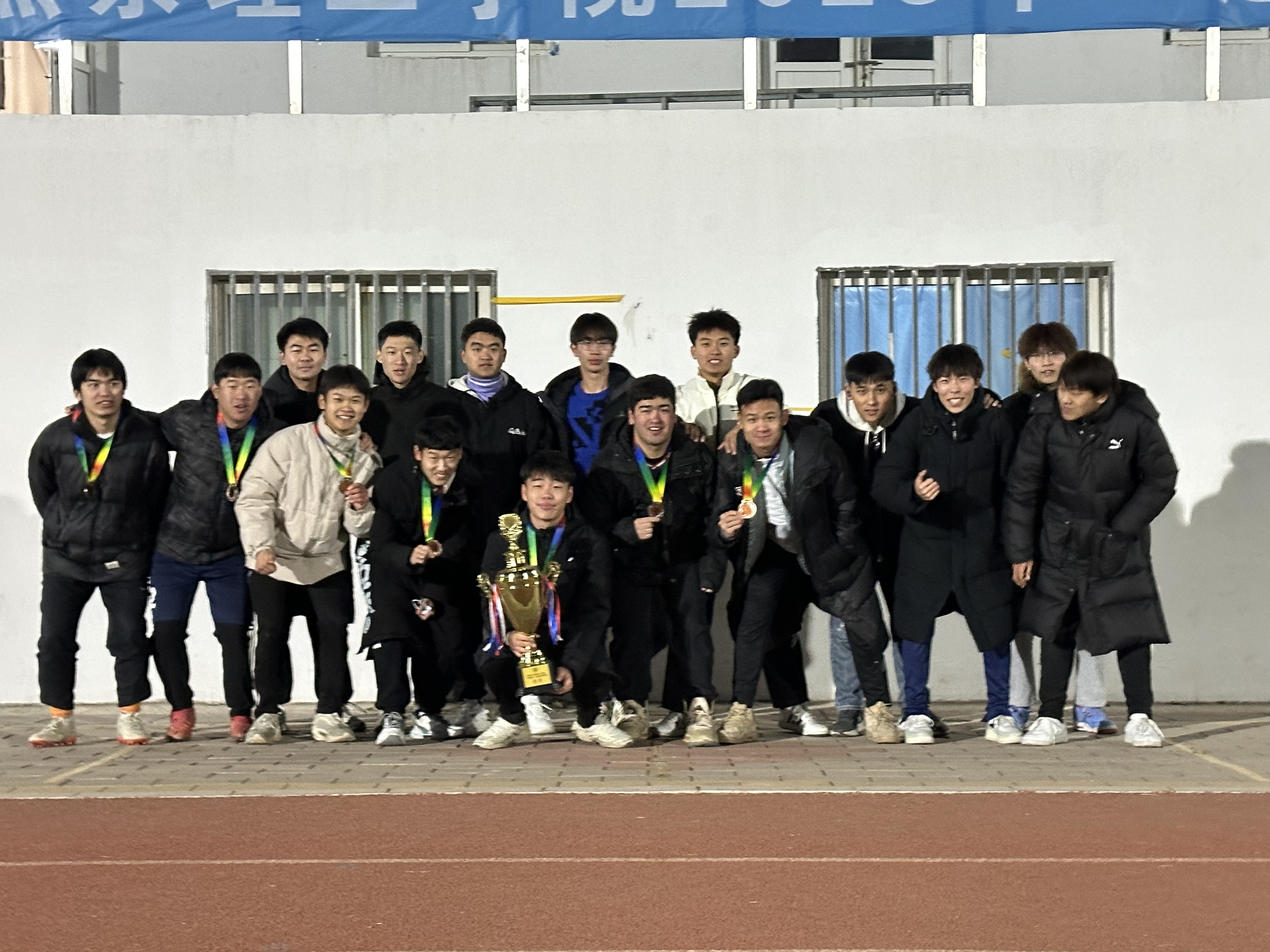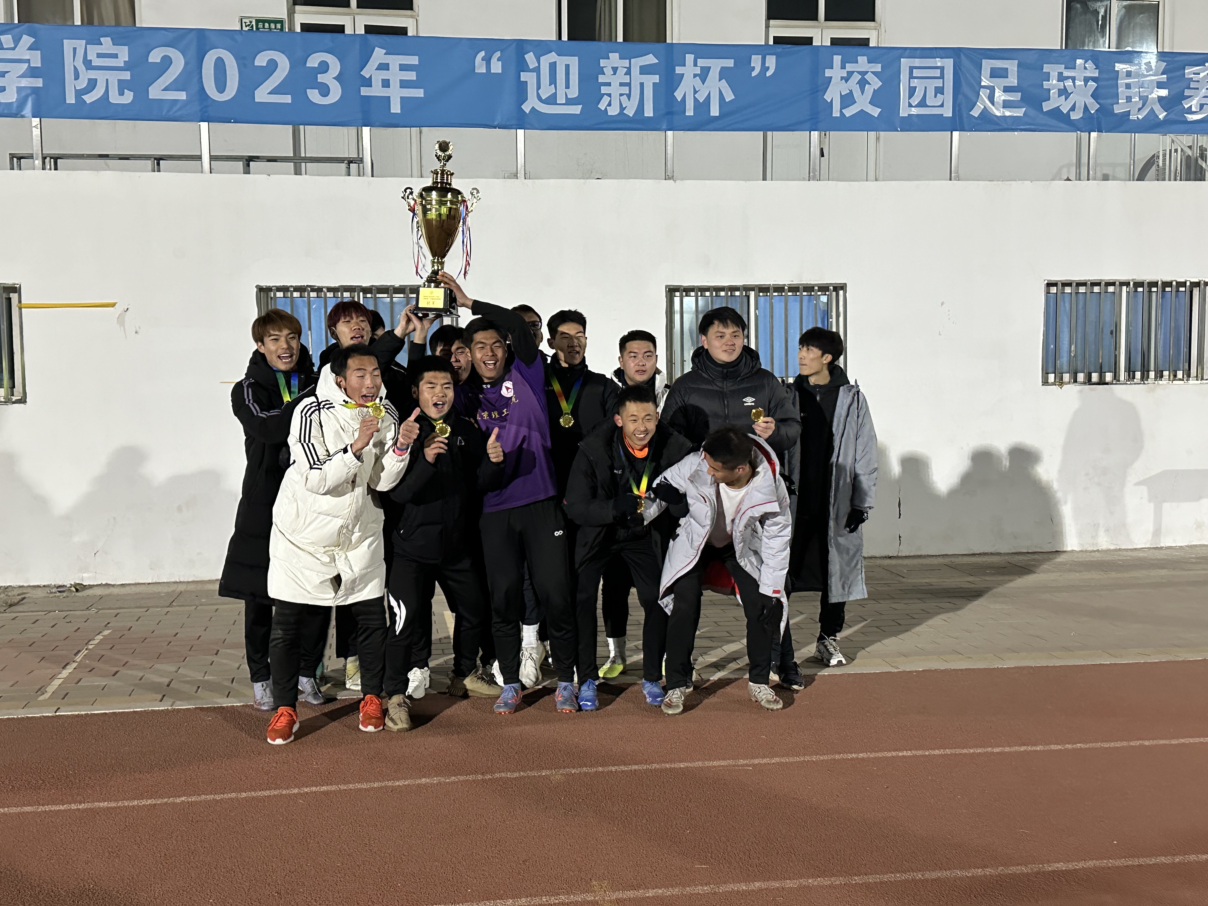 (体育学院新闻中心)为贯彻落实阳光体育运动,体现大学生的足球比赛水平,展现校园风采,丰富大学课余生活,强健大学生体魄,加强燕理学子的凝聚力和集体意识。12月3日下午,由燕京理工学院校团委主办,体育学院社团联合会承办的2023年燕京理工学院“迎新杯”校园足球联赛决赛暨颁奖典礼在学校足球场举行。本届赛事裁判长、体育学院教师李宇航老师出席本次活动。