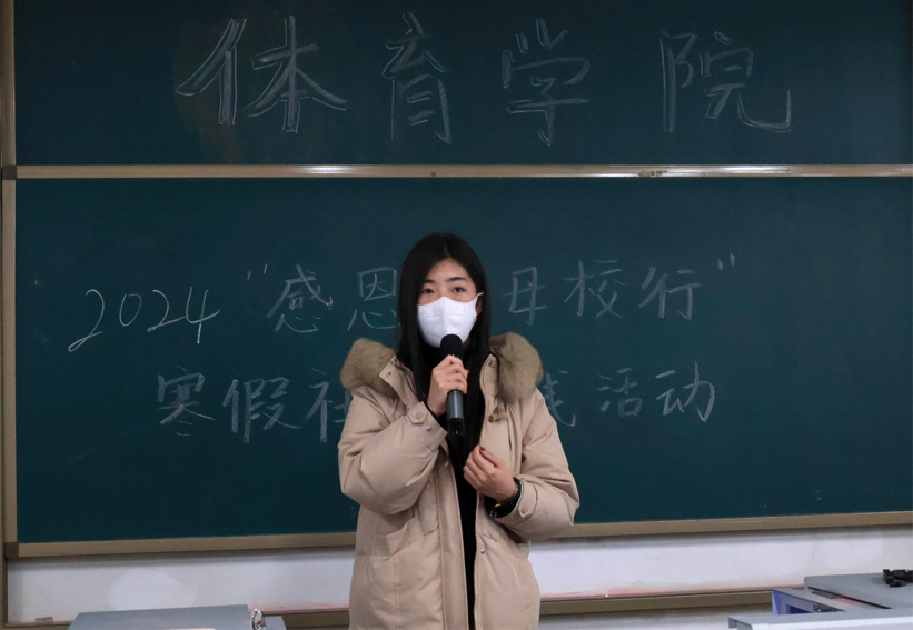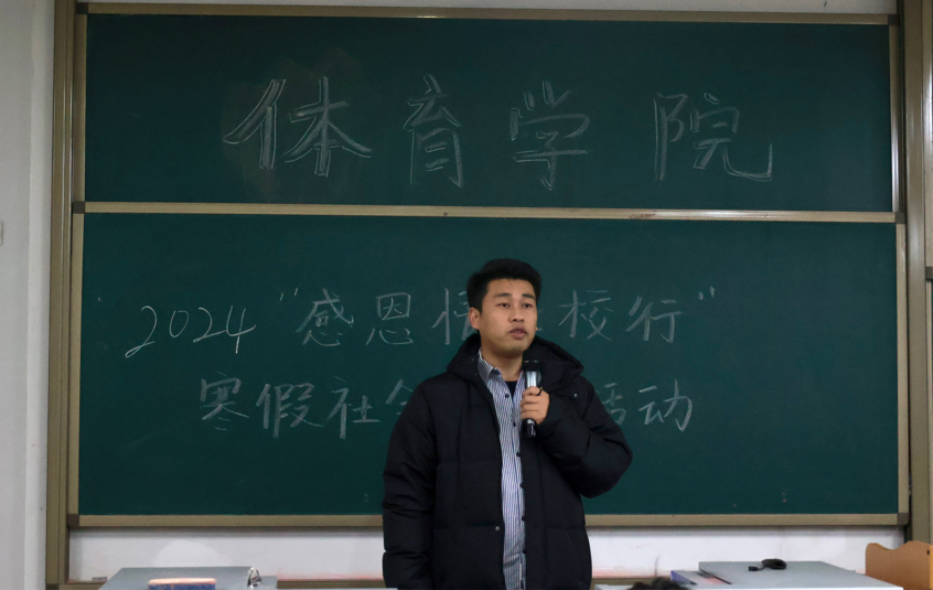 (体育学院新闻中心)为了增强大学生志愿服务意识,传播志愿服务精神,让学生更好的进行寒假志愿实践,体育学院在综合楼201开展“感恩情,母校行”寒假社会实践活动讲座。体育学院各个班级学生参加此次讲座。邵欢老师担任主讲人。