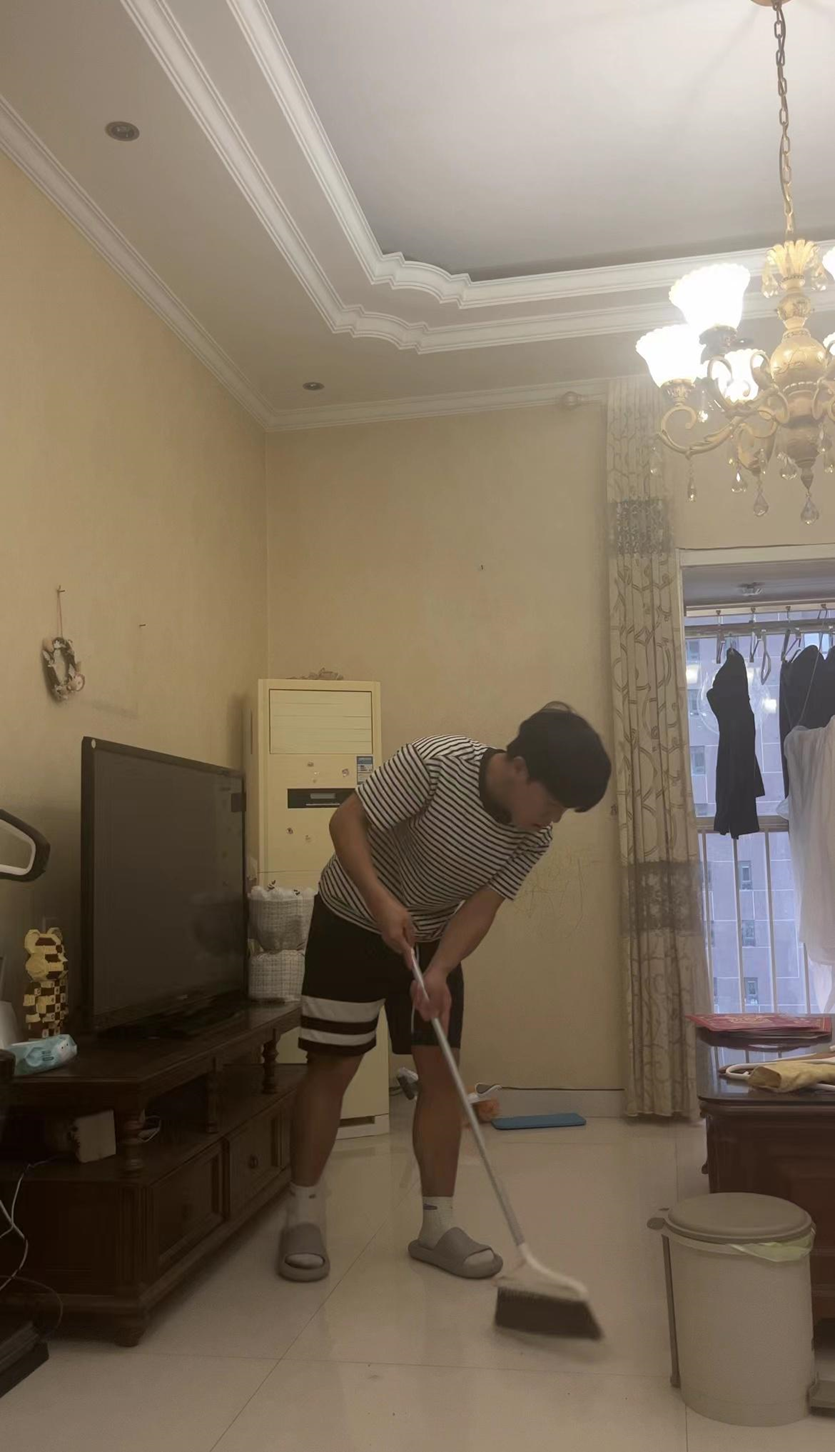 我先从整理自己的房间开始,把衣物整理好,书桌上的杂物摆放整齐。然后,我开始擦拭家具、拖地,还清洗了厕所和厨房。