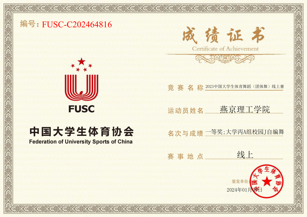 我校体育舞蹈运动队获得2023年中国大学生体育舞蹈(团体舞)线上赛一等奖
