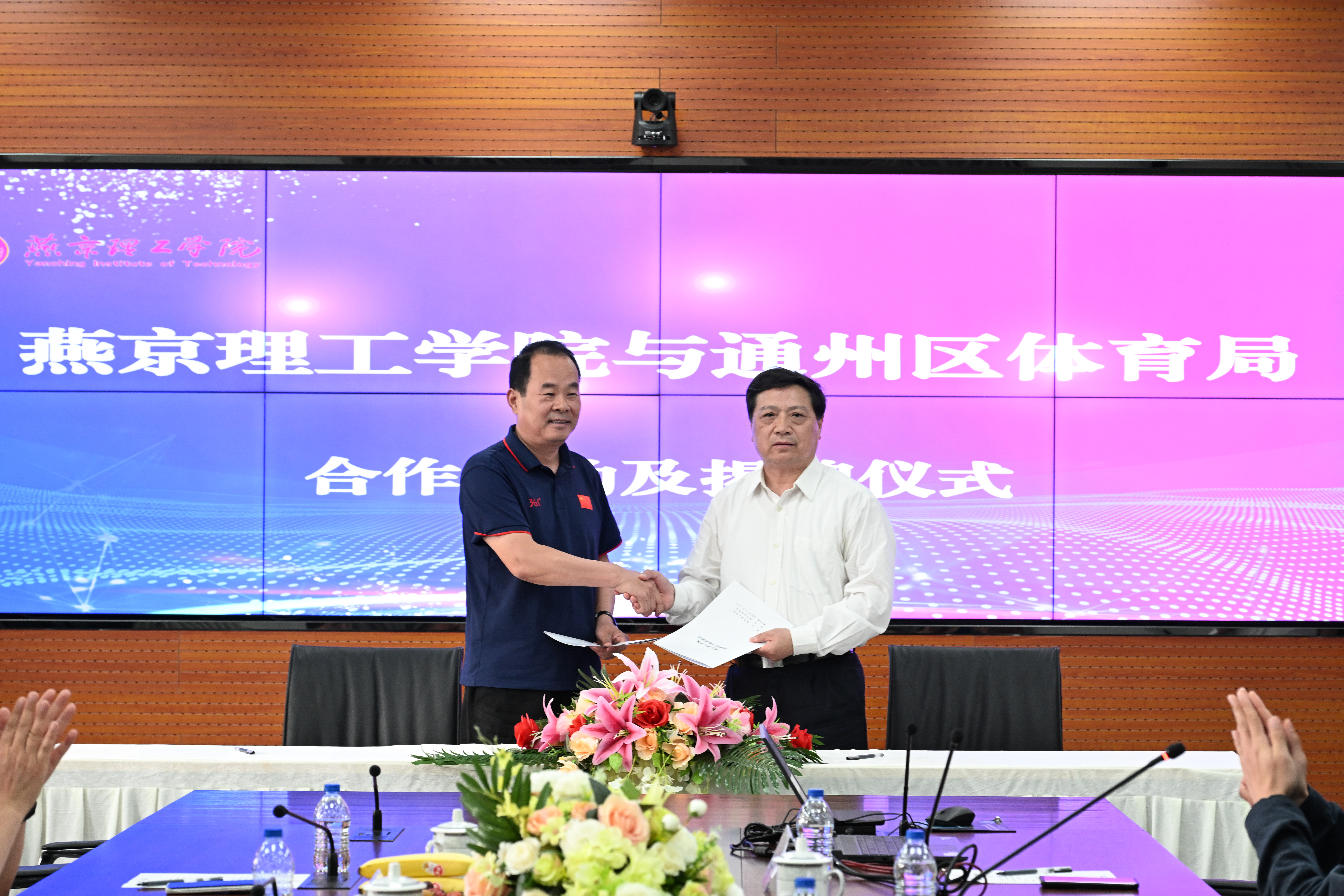 杨庚宇校长和邓小民局长正式签署了《燕京理工学院战略合作框架协议》,王传超副校长和刘月刚副局长共同为“北京城市副中心体育人才联合培养基地”揭牌。本次合作是燕京理工学院培养应用型人才、推进开放办学的又一阶段性成果,标志着燕京理工学院在推动政校合作、服务社会发展等方面工作再上新台阶。