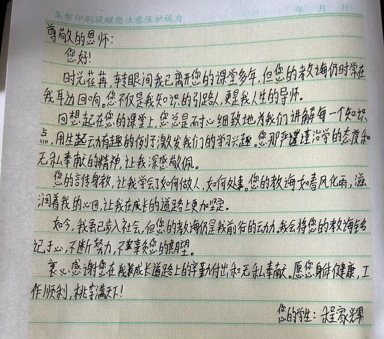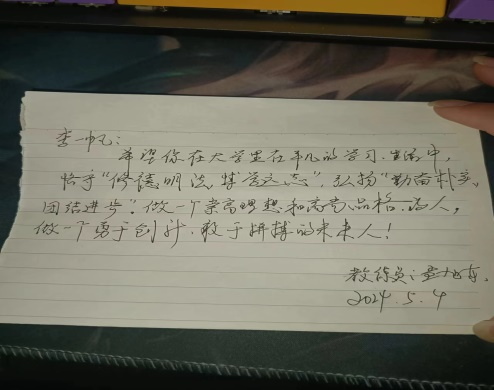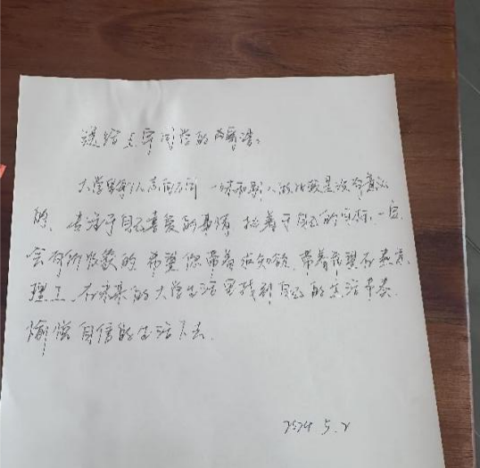 本次活动分为与昔日母校恩师的一次谈话、为高考前一天的自己写一封信、分享一个燕理故事和志愿小导师等形式展开。同学们带着满满的回忆来到中学母校,怀揣着恩师爱的寄语走出母校大门。一张张照片,一封封信件,记录了本次实践活动的温馨一瞬,以下是同学们参与本次活动的精彩摘录。
