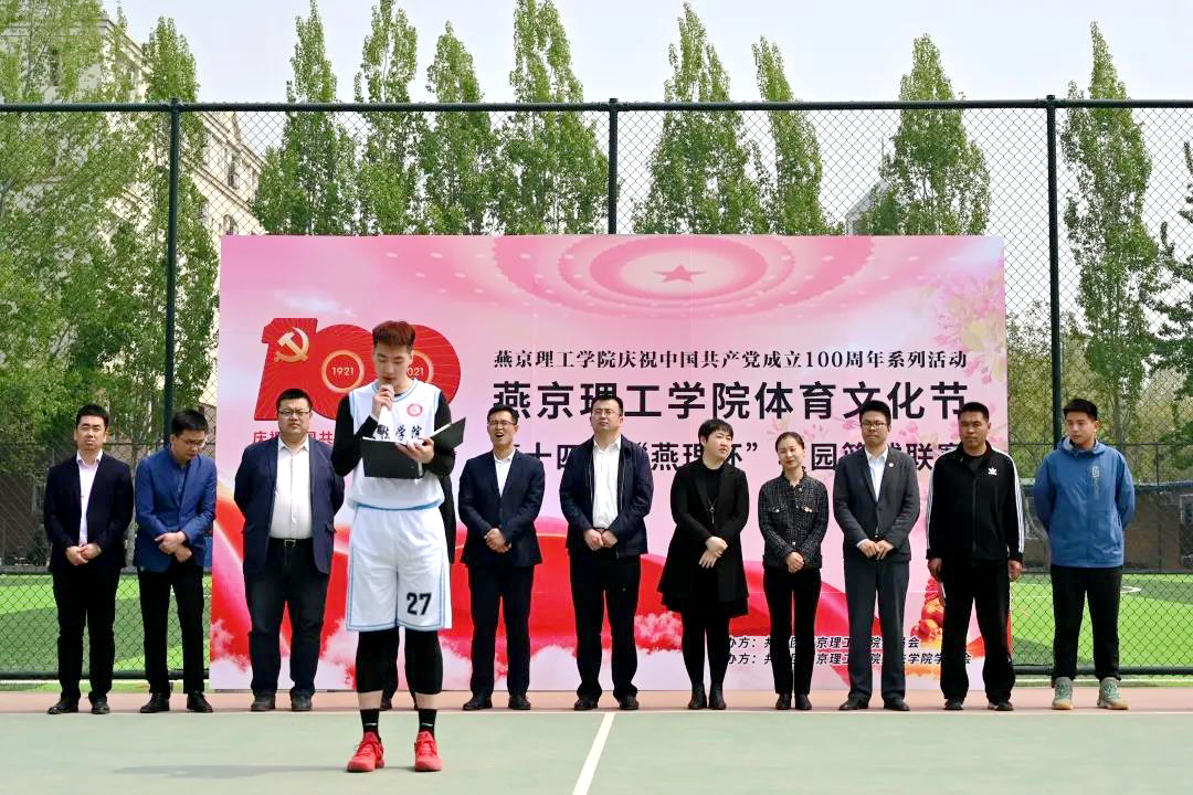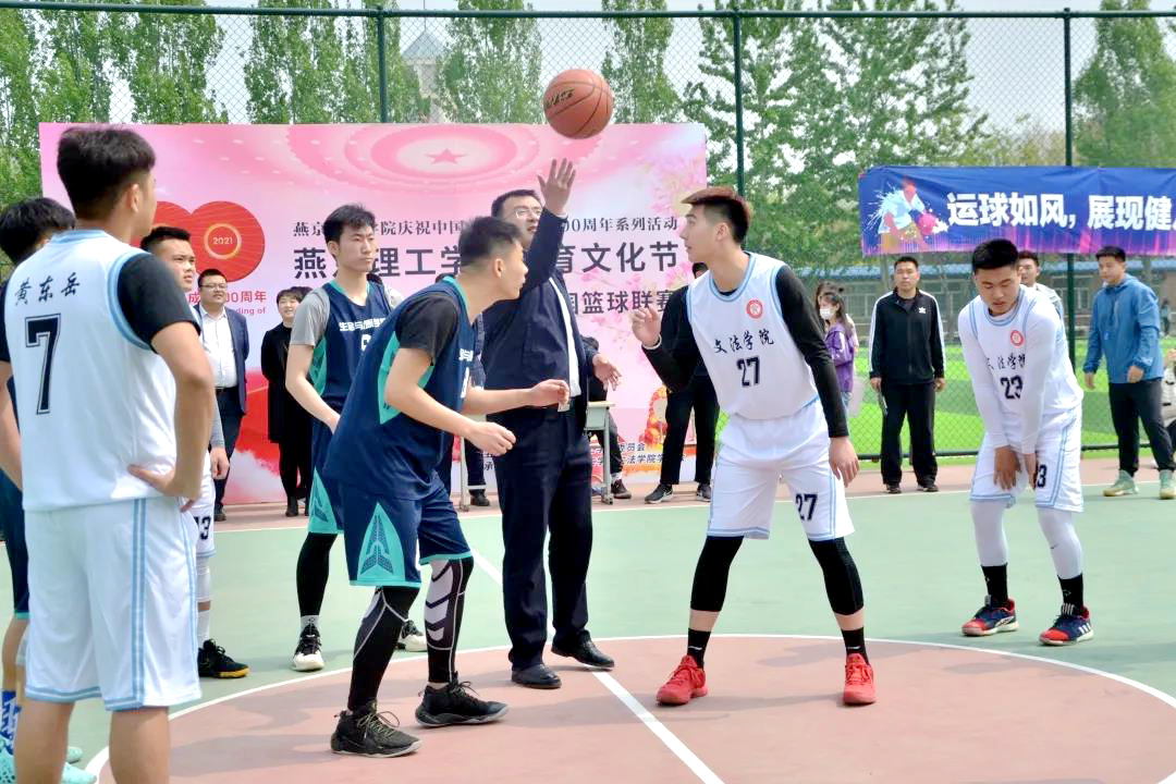 4月15日,体育文化节系列活动之“青春和篮球有约 梦想与希望齐飞”第十四届“燕理杯”校园篮球联赛开幕式在篮球场举办。党委副书记、副校长王传超,学生处处长和各学院主管学生工作副院长参加了开幕式。