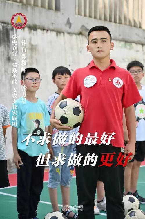 文法学院2018级社会体育指导与管理专业的张万星,于2021年5月赴四川平武苏维埃红军小学开展为期三个月的长期支教。他只身来到一千八百公里外的四川省平武县苏维埃红军小学,结合专业所学,成为了一名体育教师。在大山深处留下支教记忆,在乡村振兴图景里留下青春印记。