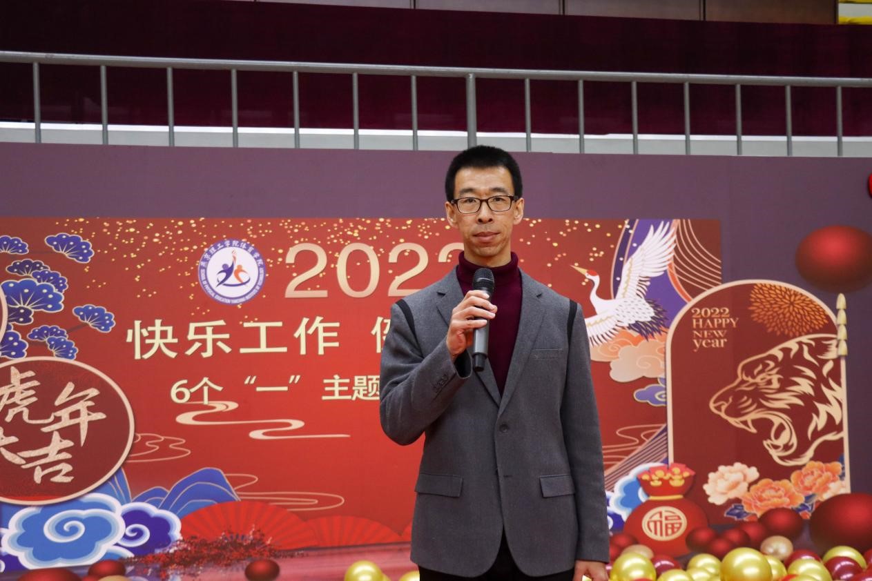 体育学院副院长肖子一从新一学期的工作展望出发,对全体教职工提出新的要求,2022年希望在全体教职工的共同努力下,体育学院再创佳绩,并对全体教职工致以新春祝福。