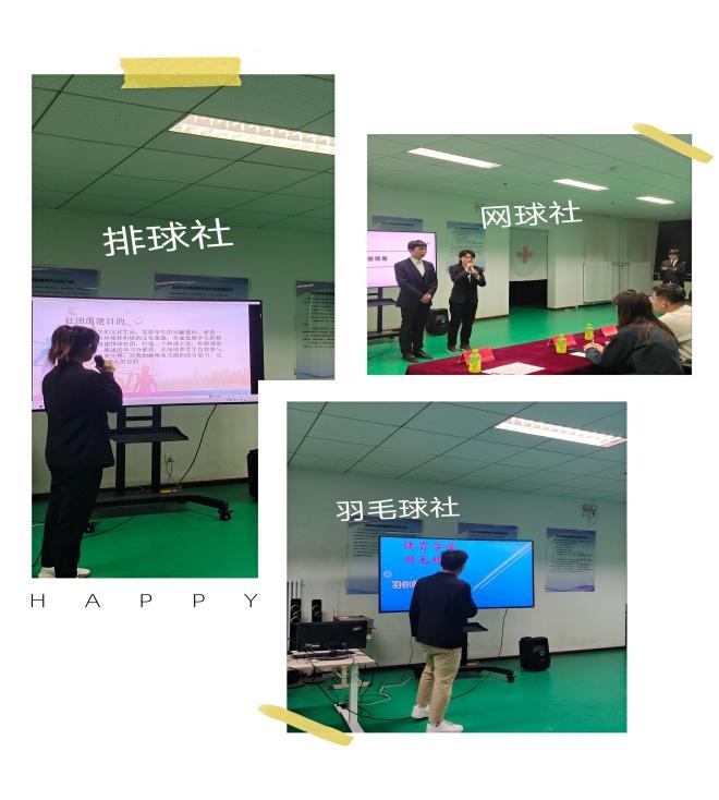 排球社、网球社、足球社、羽毛球社、体育舞蹈社、武术社代表依次进行社团风采展示,并对评委提出的相关问题作出详细解答。其中,排球社以扩大组织结构作为切入点,致力于帮助更多学生体会到排球的乐趣。羽毛球社以“强身健体,怡情养德”为口号,鼓励学生们发扬运动者的活力和激情,培养体育情操。各社团巧妙地将兴趣、态度和个性融为一体,详尽介绍自身特色以及未来发展规划。