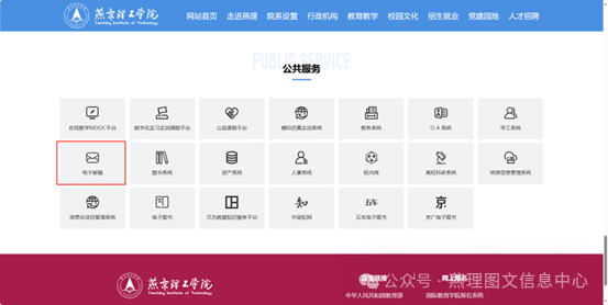 登陆网址:http://mail.yit.edu.cn/或在学校官网首页公共服务中点击“电子邮箱”。