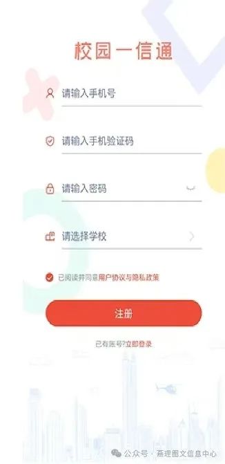 1、关注校园一信通微信公众号,进入校园一信通,立即注册