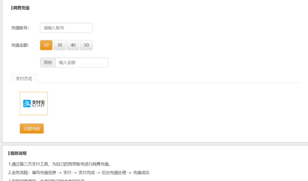 2.包月20元:每月25G上网流量,超出部分按照 1 元/G 进行计费!
