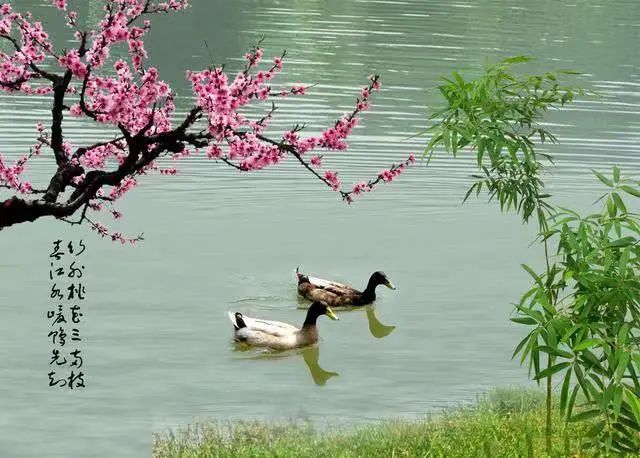 竹林外两三枝桃花初放,水中嬉戏的鸭子最先察觉到初春江水的回暖。河滩上长满了蒌蒿,芦苇也长出短短的新芽,而河豚此时正要逆流而上,从大海回游到江河里来了。