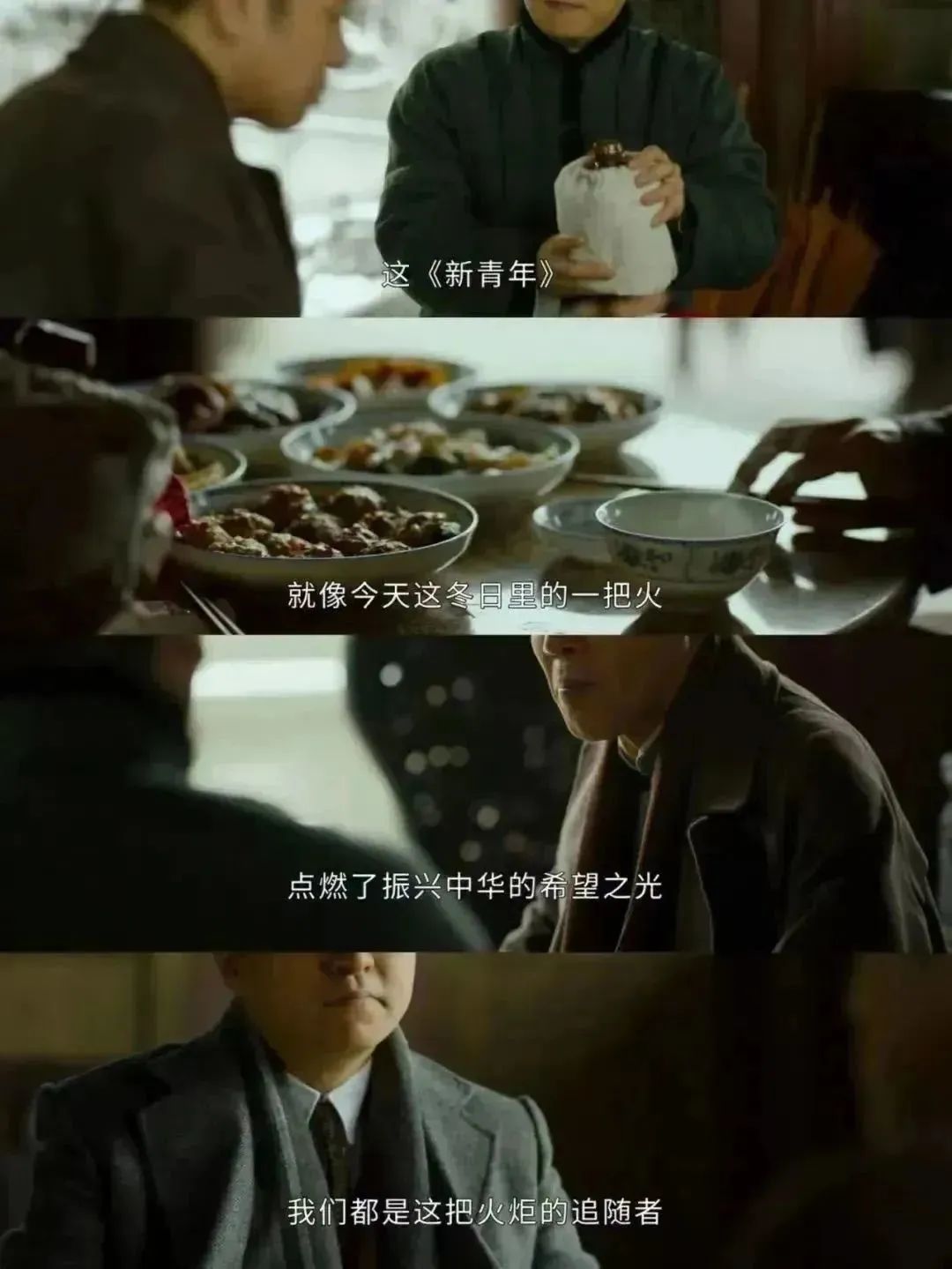 《觉醒年代》这部电视剧让我真真切切地认识了先生们,原来历史书上短短一句便是先生们赤血的一生。《觉醒年代》中有“地球即成白首,吾人尚在青春,以吾人之青春,柔化地球之白首,虽老尤未老也”的李大钊;有“君去也,甘将热血红青岛,吾来也,不许狂奴憾泰山”的陈独秀;有“南北夹击,万箭齐发,来势汹汹,是可忍,孰不可忍”的鲁迅等。“江山代有人才出,各领风骚数百年”我们是《觉醒年代》最好地续集,横有八方,纵有千古,前途似海,来日方长,愿以吾辈青春,护盛世繁华。