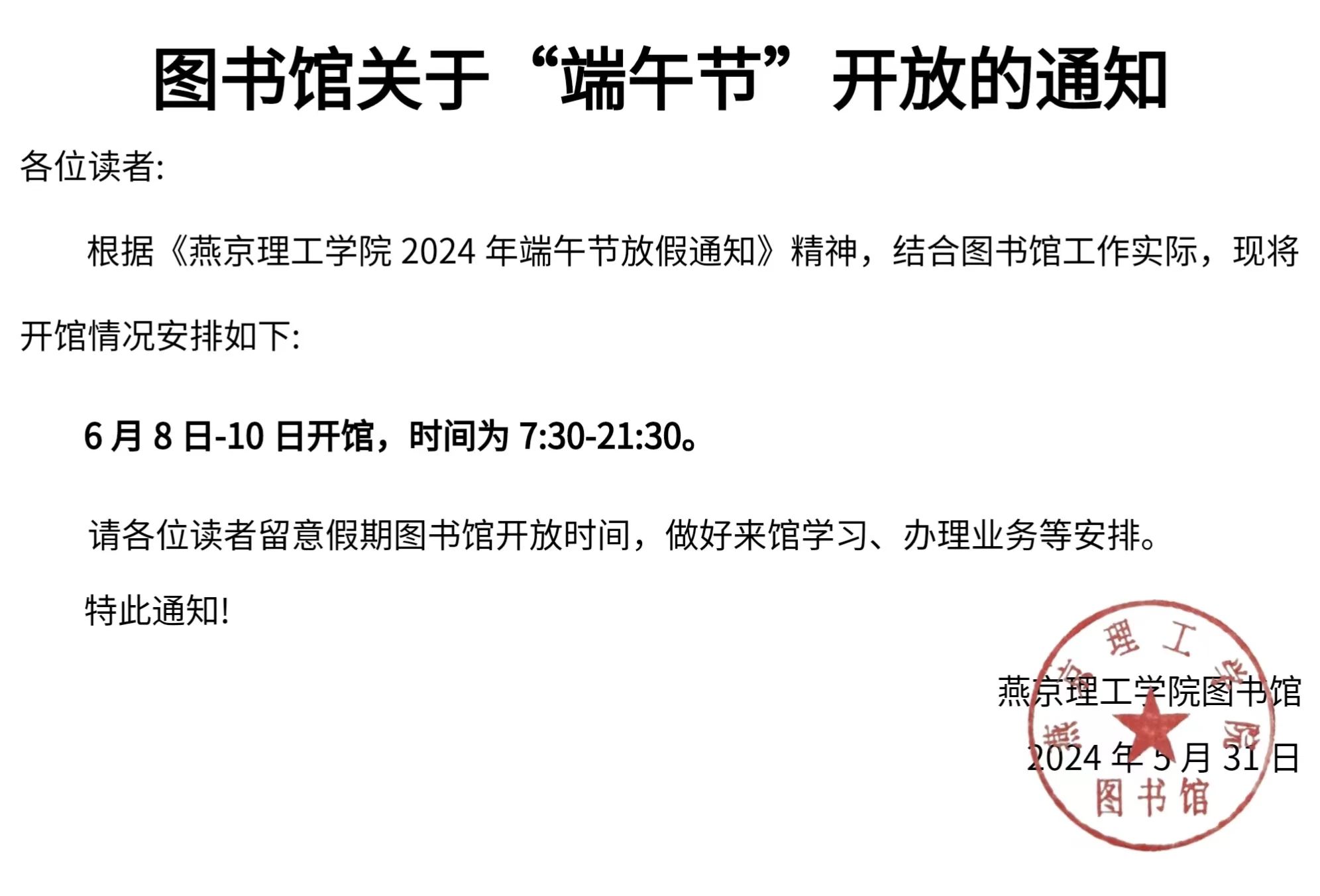 图书馆关于“端午节”开放的通知