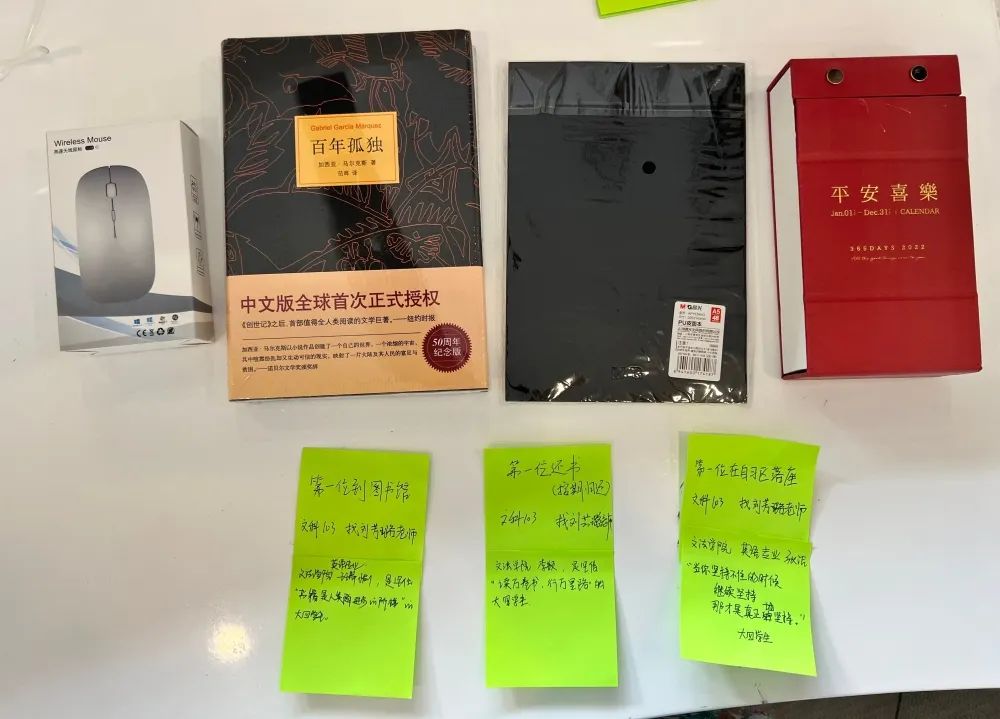 图书馆特别准备了系列文创礼物,奖励了第一位到馆的学生王瑞愉,第一位在自习室落座的学生张洁,第一位借阅图书的学生冯清康,第一位按期归还图书的学生李颖,鼓励同学们在学期加倍用功努力学习,借助图书馆更好地助力同学们学业进步。