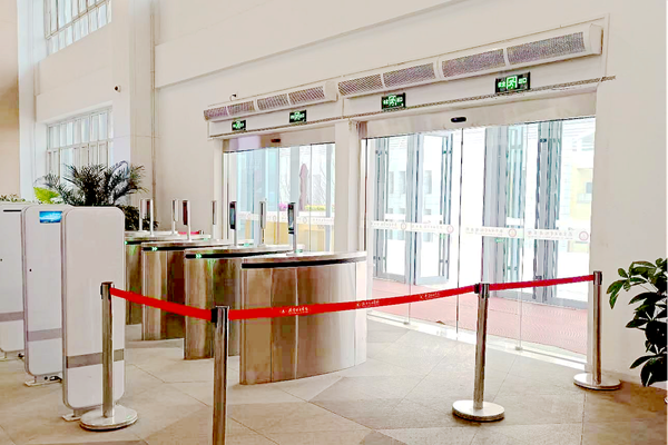 图书馆正门新安装了电磁感应门,环保、节能、美观,可有效防止冷热气体从室内流出,从而达到节能的目的。