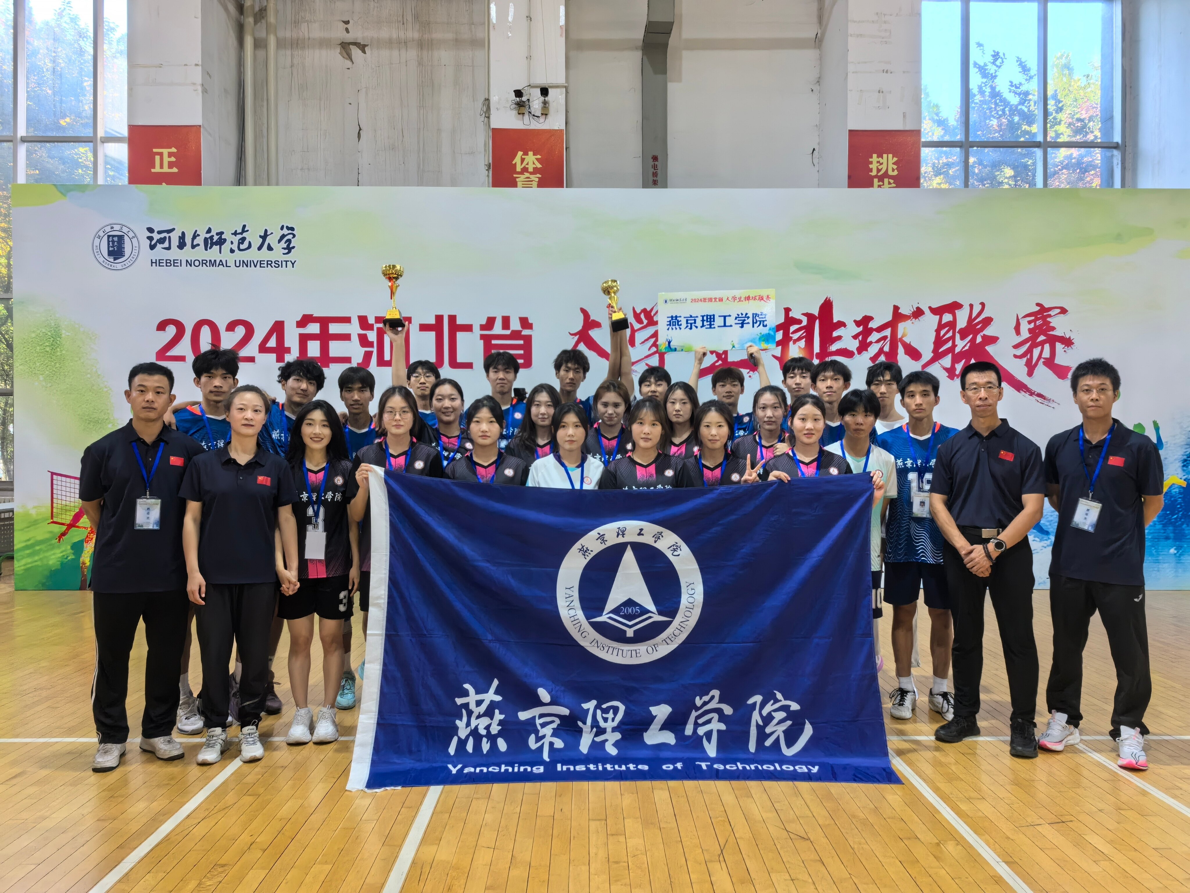 在学校领导的大力支持和鼓励下,由体育学院院长肖子一作为领队,李强、郭雨泽作为男子甲组排球队教练员;吕逸、张子阳作为女子甲组排球队教练员,带领我校24名运动员前往河北师范大学参赛。我校运动健儿们不负众望,在比赛中敢打敢拼,充分展示了燕理学子顽强拼搏的精神风貌和良好的竞技状态。经过小组赛激烈角逐,我校男子甲组排球队以小组第一闯入第二阶段的比赛、女子甲组排球队以小组第三顺利进入淘汰赛阶段。最终,在全省众多参赛队伍中,我校男子甲组排球队取得第四名、女子甲组排球队取得第六名的好成绩,创造了我校在该组别赛事中的历史新高。