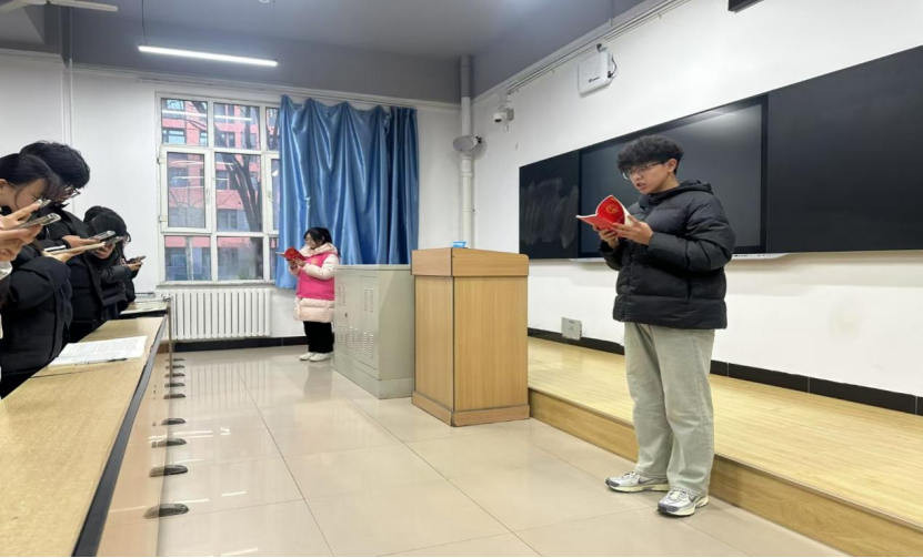 当日清晨,凛冽寒风难挡学子热情,宪法晨读活动有序开启。在代表学生的领读下,宪法条款声声入耳,从国家根本制度、根本任务的庄严宣告,到公民基本权利义务的精准界定,每一词句皆似重锤击鼓,唤醒同学们心底对法治的尊崇。
