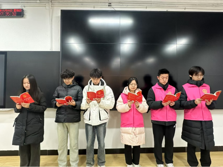 为响应教育部号召,深入贯彻依法治国理念,加强对大学生的法治教育,增强大学生的法治意识与国家认同感,在我国第十一个国家宪法日来临之际,国际商学院积极响应我校宪法宣传周活动,于2024年12月5日开展了宪法晨读活动。