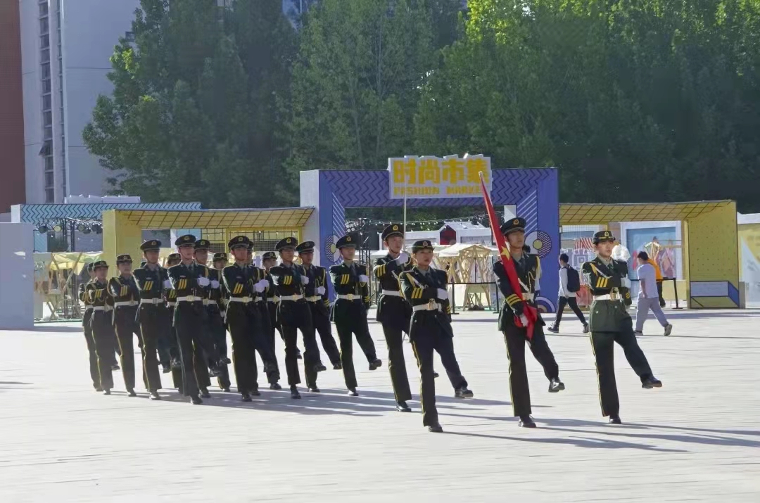 清晨,旭日初升,国旗护卫队队员迈着整齐有力的步伐阔步向前,庄严地护卫五星红旗入场,慷慨激昂的《义勇军进行曲》响彻校园,全体师生集体行注目礼,鲜艳的五星红旗缓缓升起。