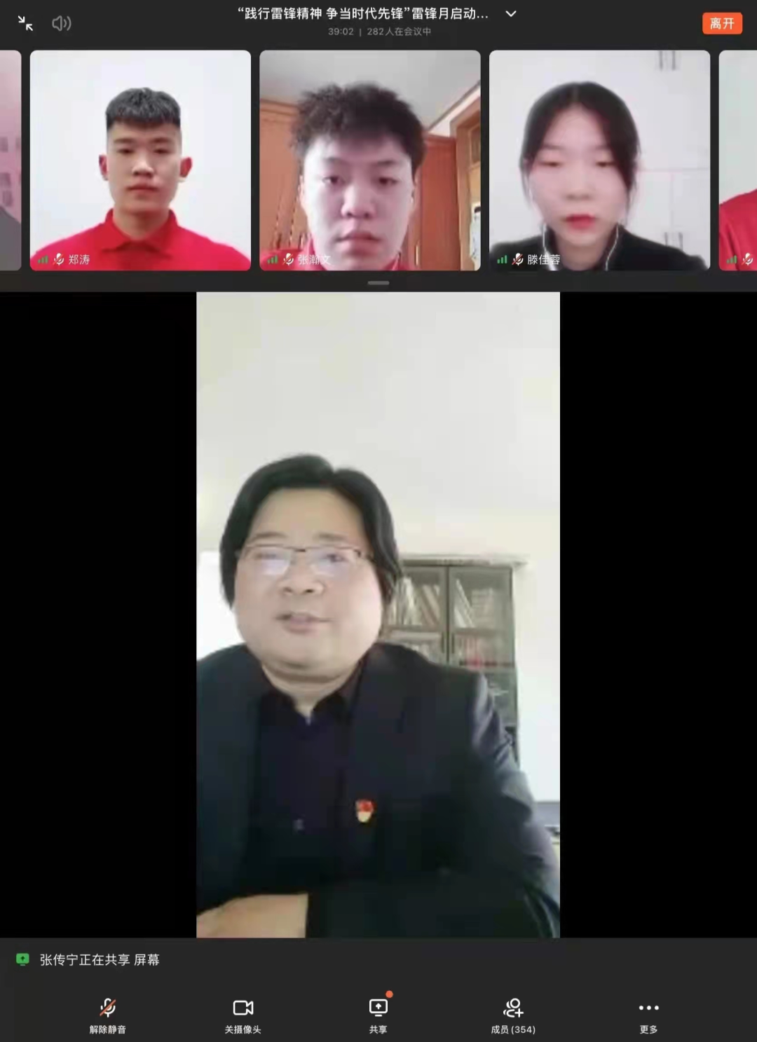 (文法学院新闻中心 记者/李润焕 雷锋连)3月5日,燕京理工学院雷锋连线上举行“雷锋月”启动仪式。文法学院党总支书记陈航、雷锋连指导老师王思齐、学校及各二级学院团总支书记、学生代表、文法学院全体辅导员教师、雷锋连全体成员参加活动。